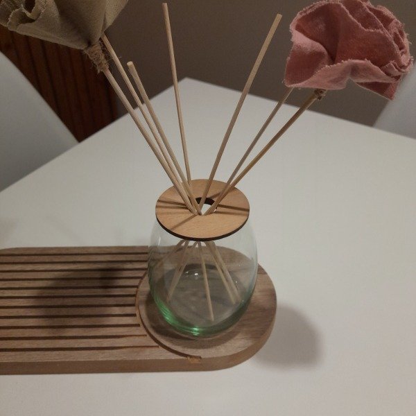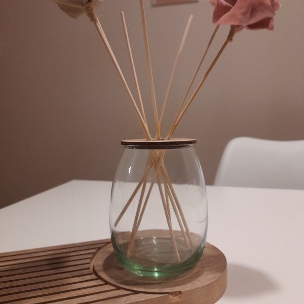 Incluye 5 varillas ratan color natural y tapa de madera.